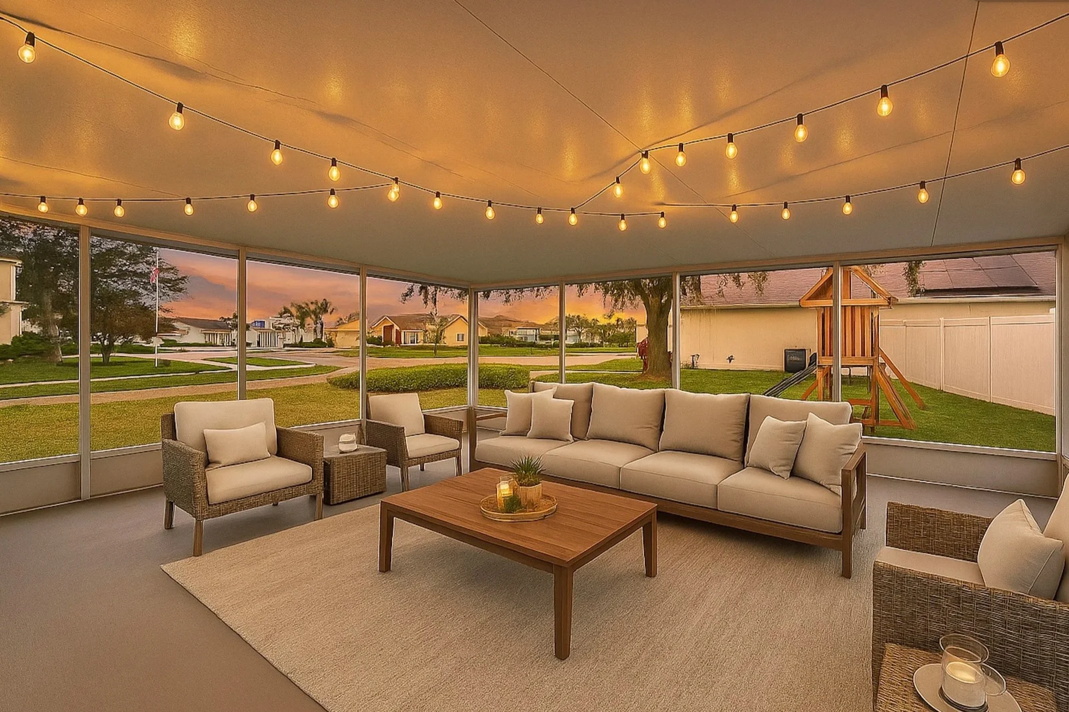 Virtually staged screened-in porch